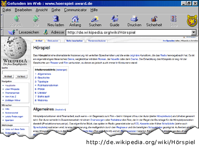 [ Wikipedia: Unter dem Suchbegriff "Hörspiel": ]